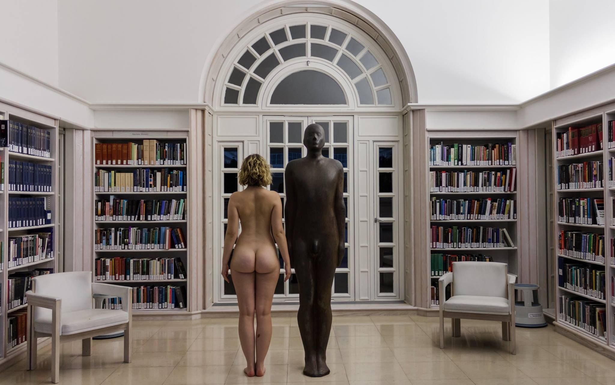 Naked women in the library