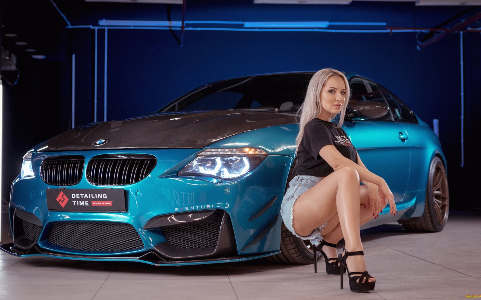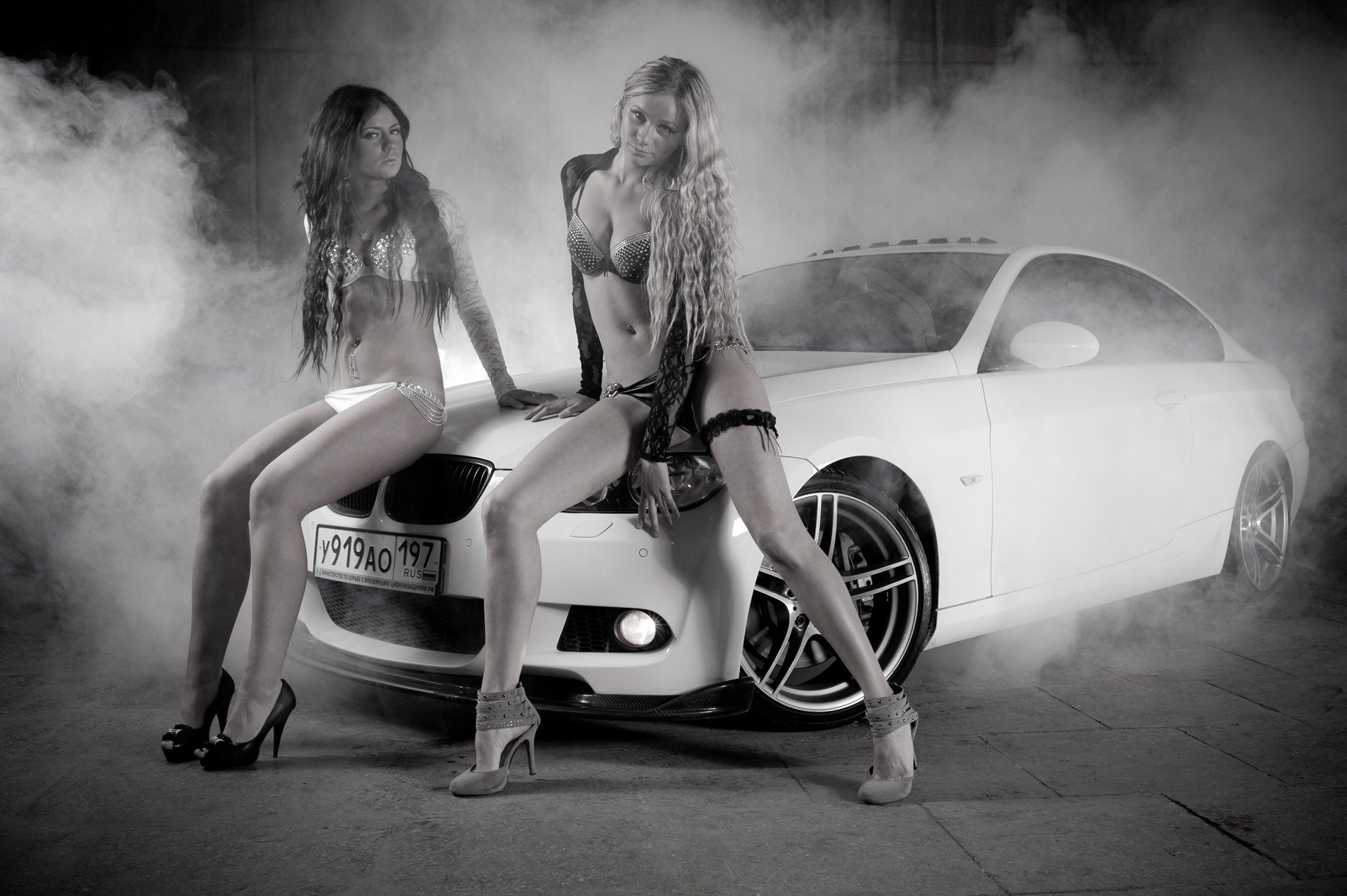 Naked chicks on the background of BMW