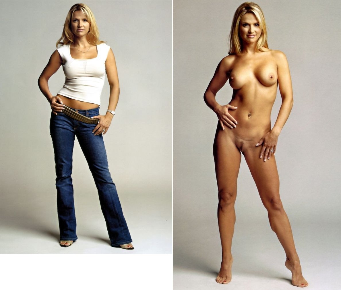 Girls in clothes and without clothes