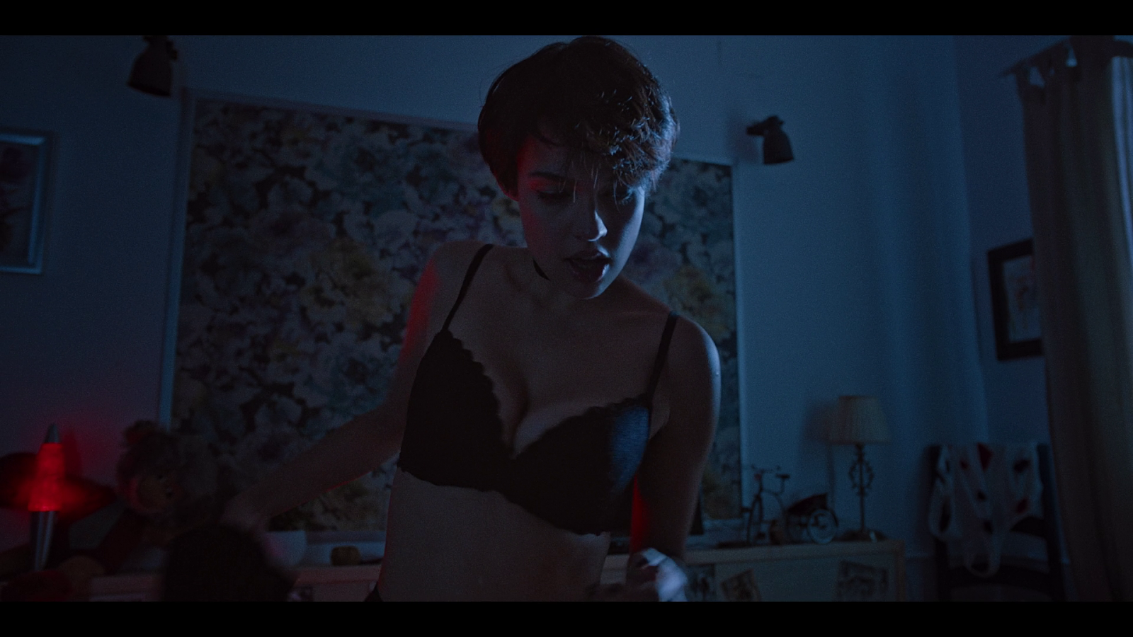 Naked beauty in a blue room