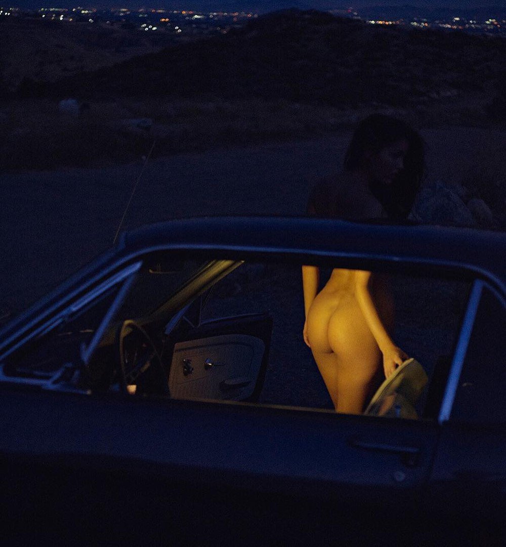 Naked chest in the car at night