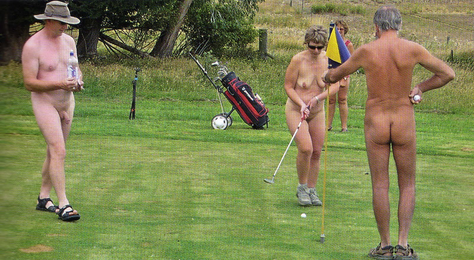 Naked girls play golf