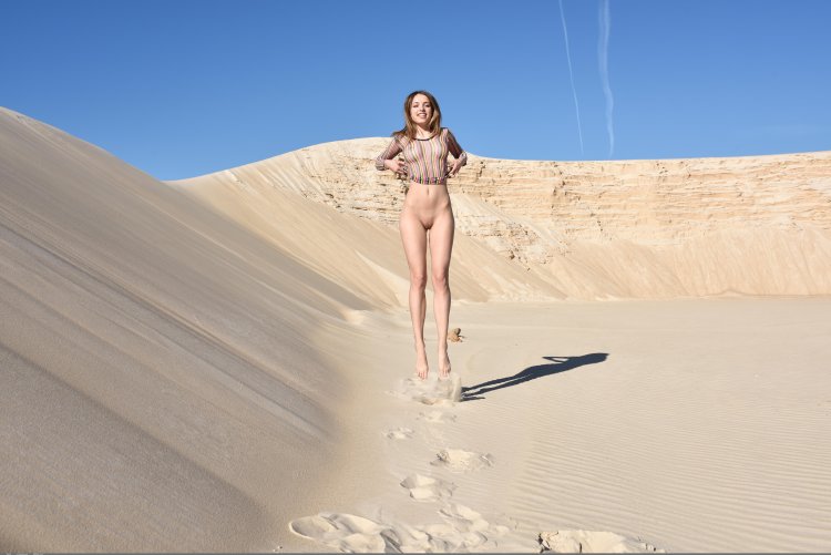 Naked Maria Ryabushkina in the desert