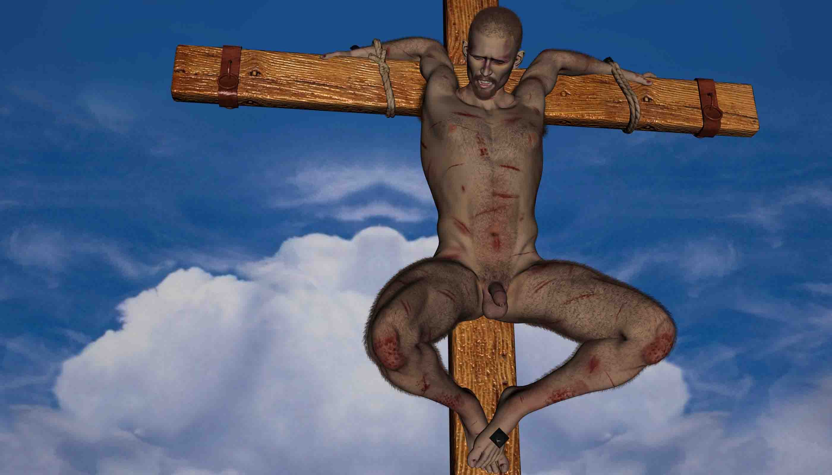 Naked male crucifix