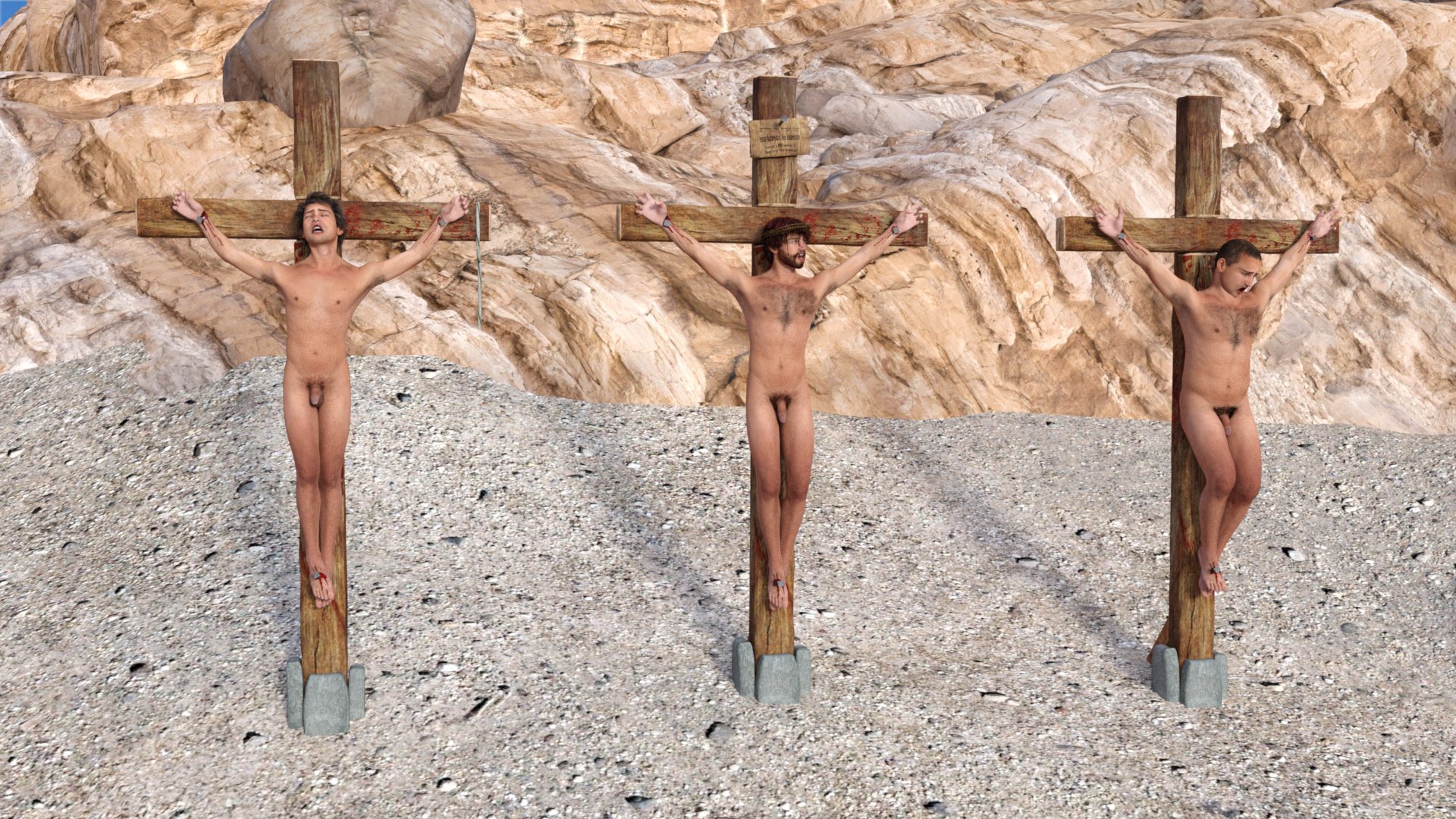 Crucifixions of naked Romans