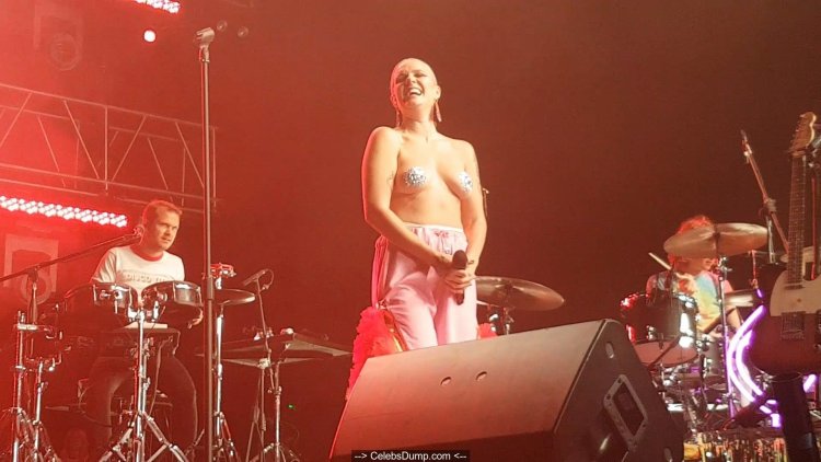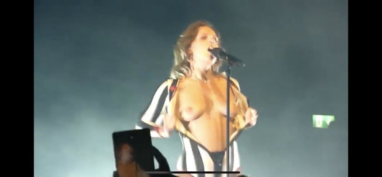The singer showed boobs