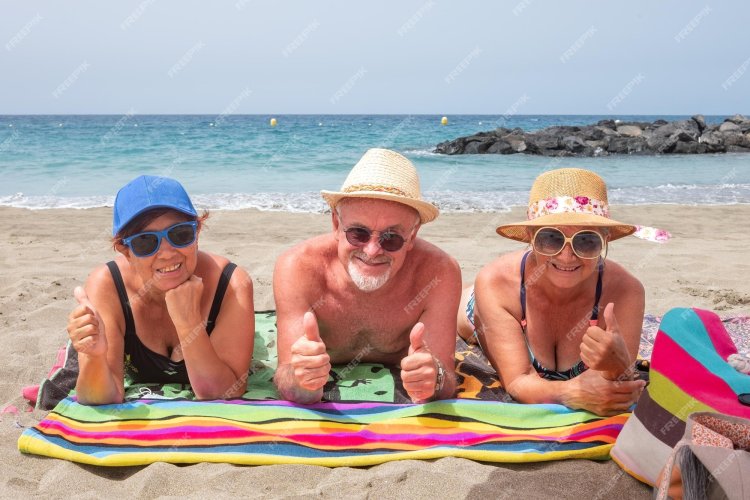 Elderly women on the beach