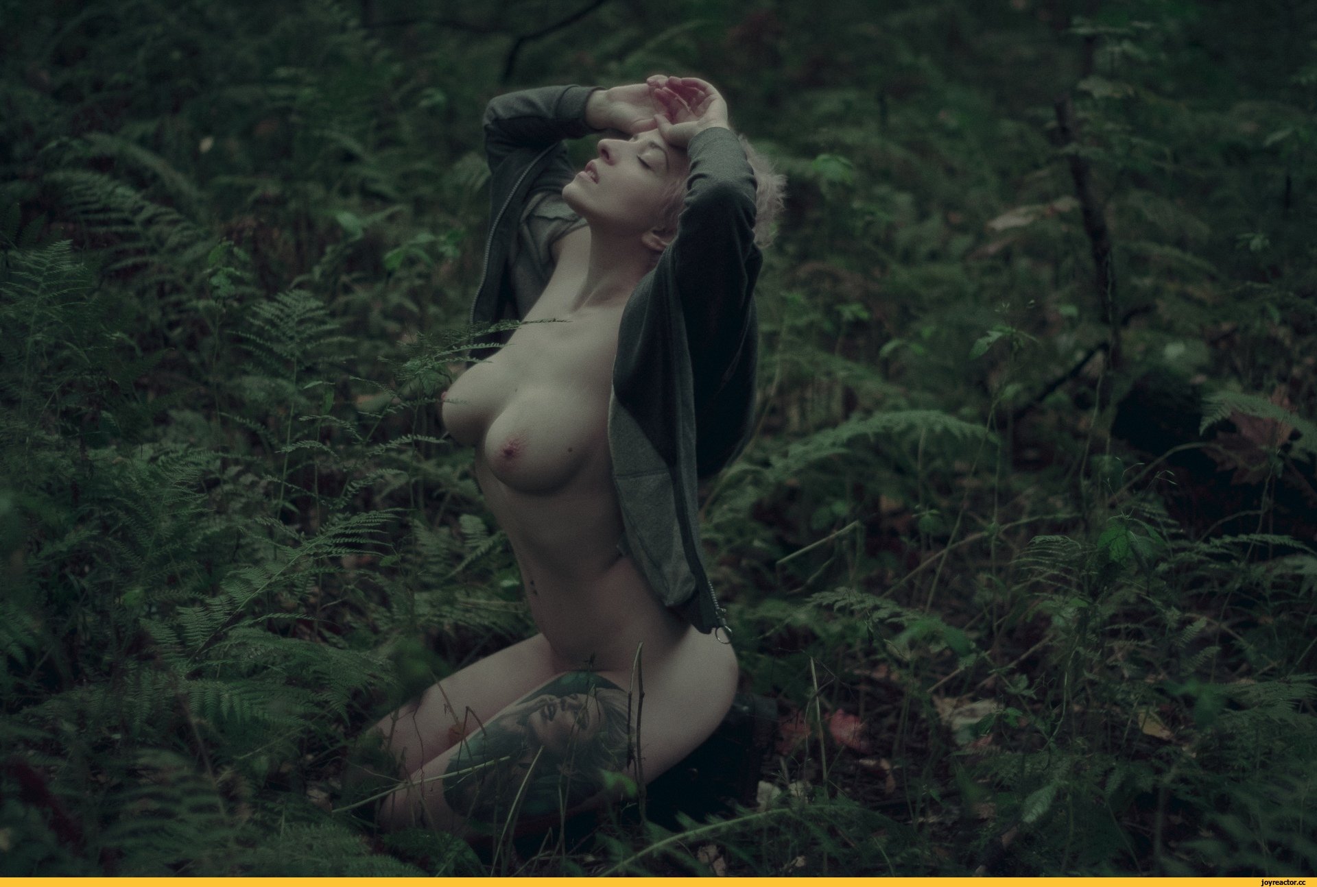 Photos of a girl without panties and a bra against the background of nature
