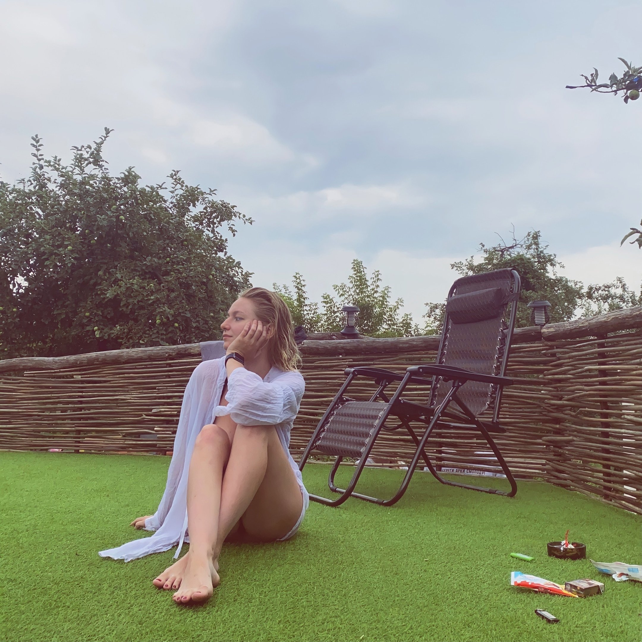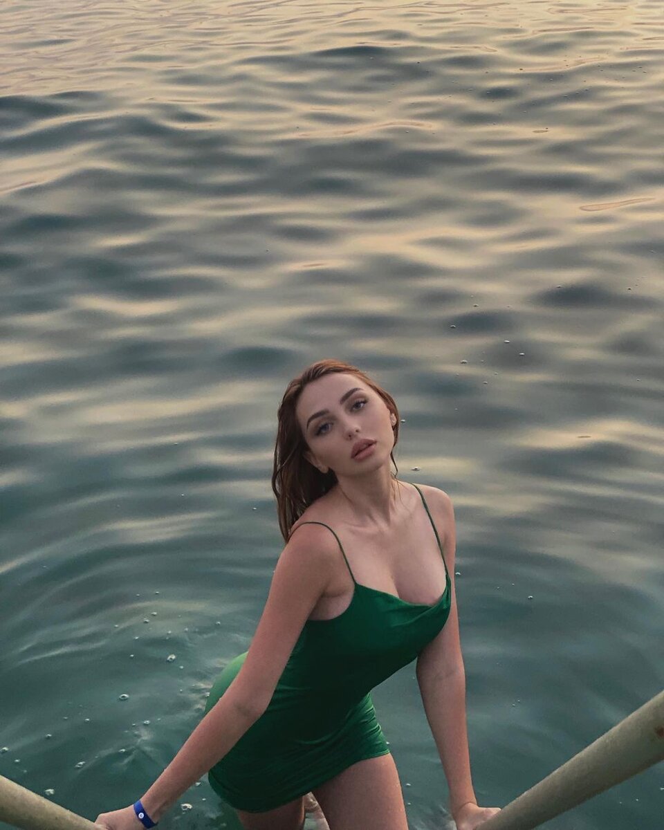 A blogger in a swimsuit