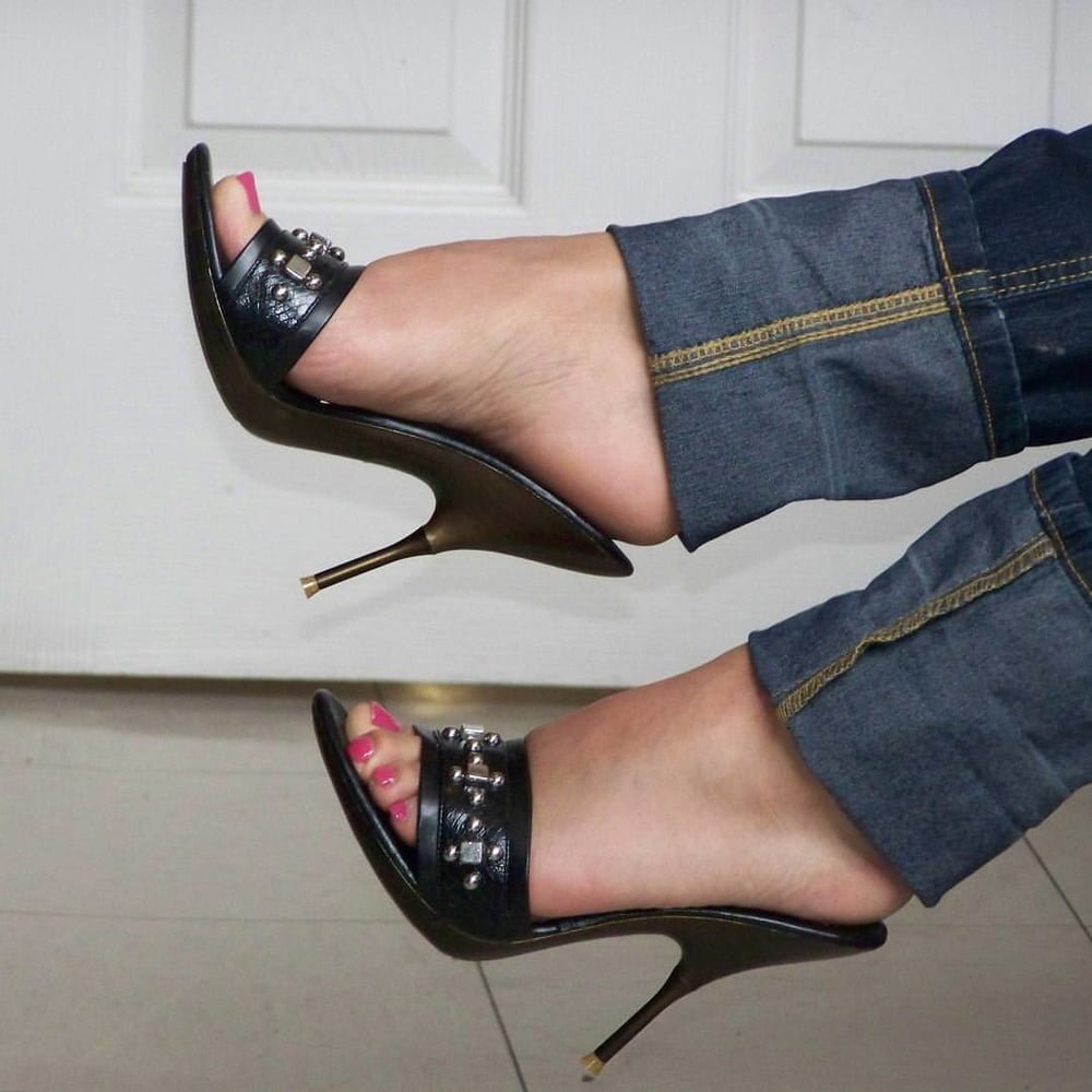 Feet in sabo on stilettos