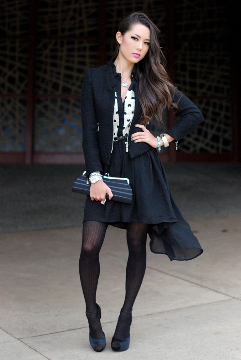 Girls in the jacket and tights