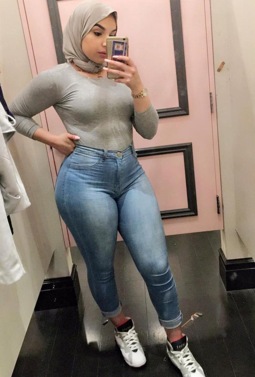 Arab Big Booty Hijab jeans rear view