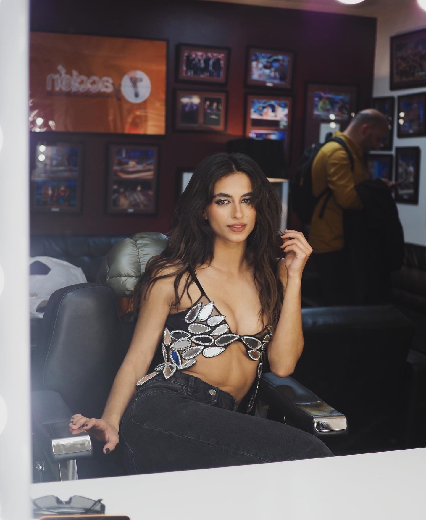 A tan with a phone