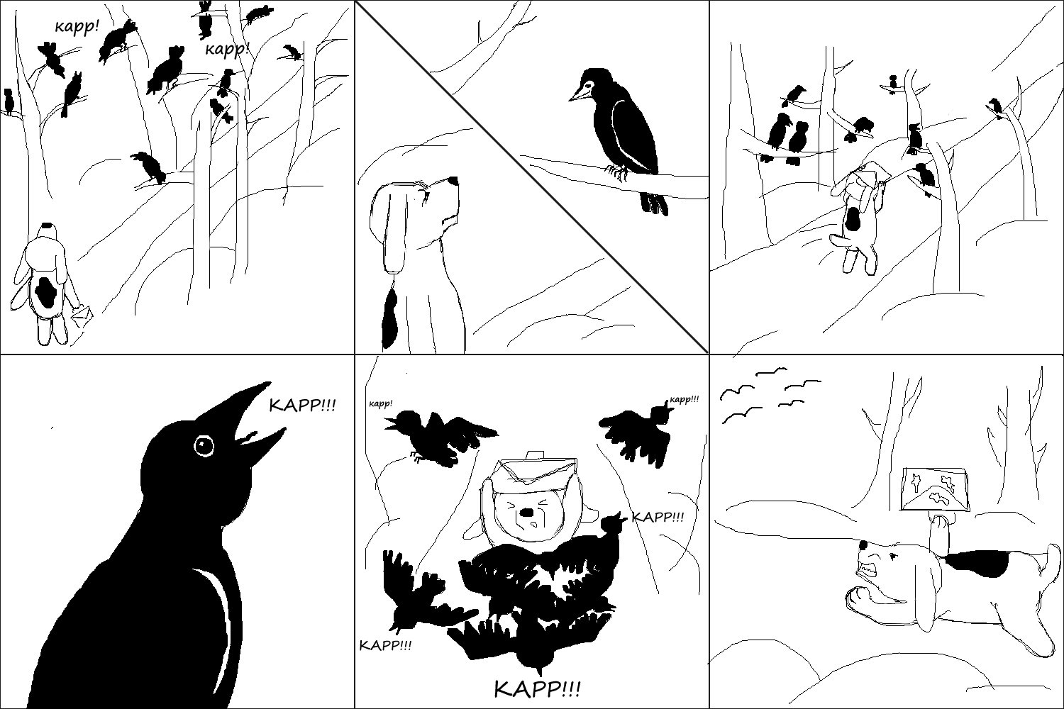 Drawing puppy and crow